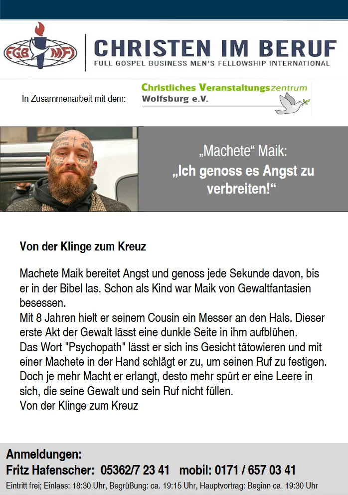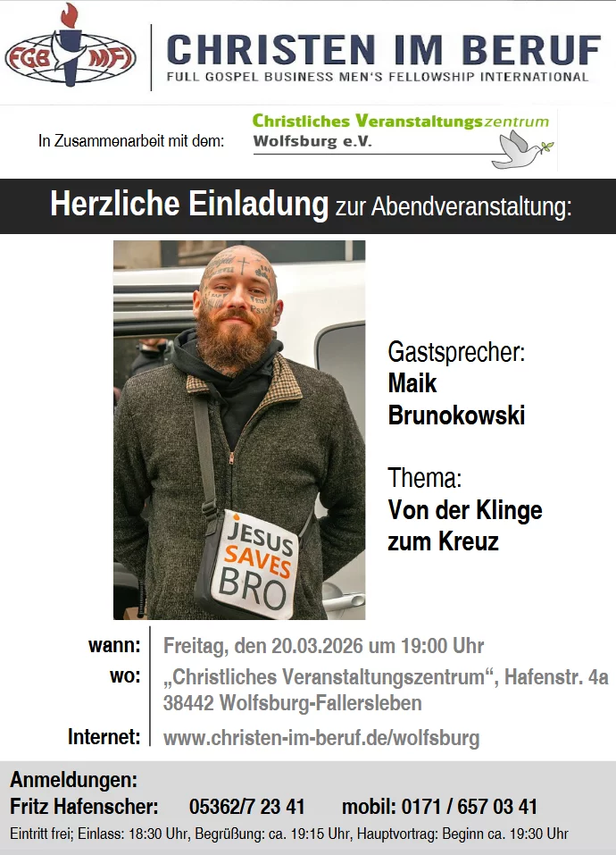 am Freitag, 20.03.2026 in Wolfsburg bei "Christen im Beruf",